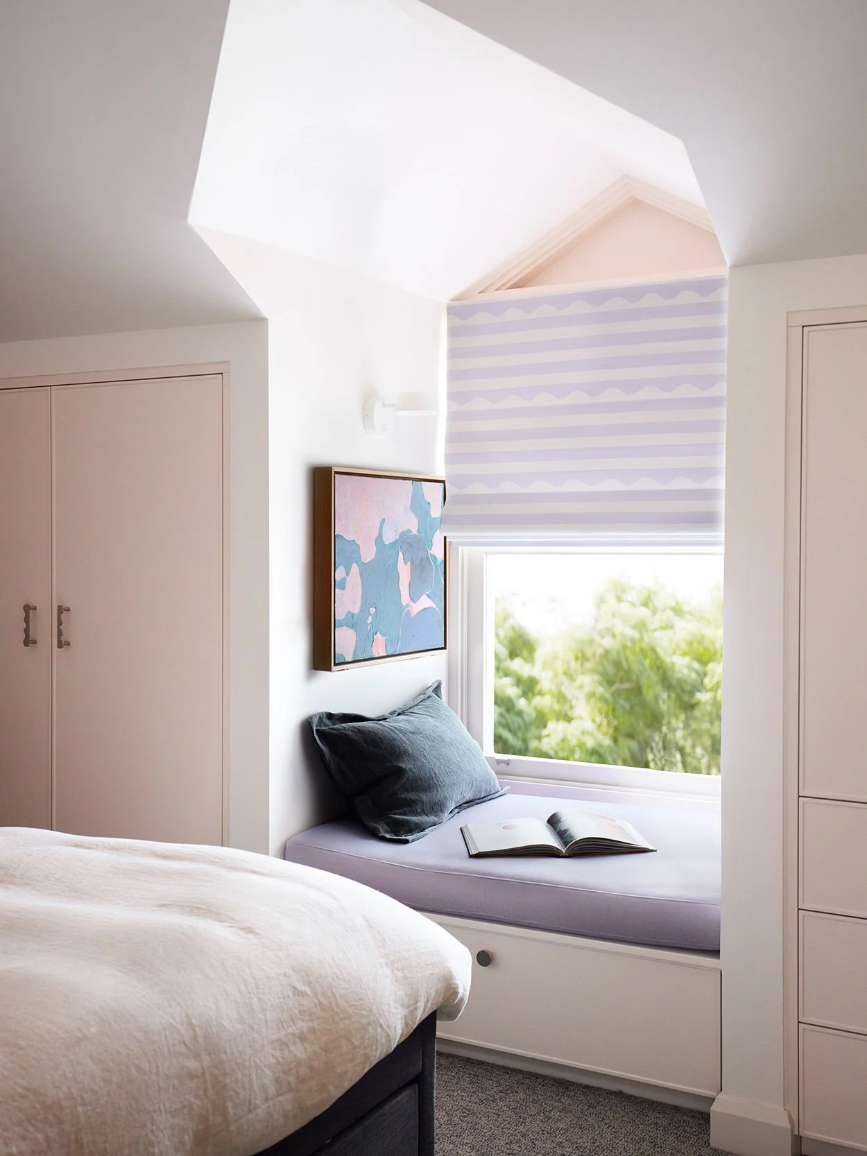 Harmony House is a delightful, colour-filled renovation of a family home in Balmain by Altus Design Studio. The second level of the home features two dreamy girls bedrooms where custom roman blinds were created using our heavy weight linen in Cinzia.